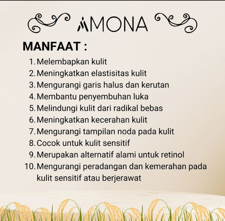 AMONA NIGHT CREAM merupakan krim malam yang membantu memudarkan noda hitam pada kulit dengan menghambat produksi melanin. AMONA NIGHT CREAM memberikan efek pencerahan yang tahan lama dan memperbaiki tekstur kulit. Kandungan Utama : - 4x Hyaluronic Acid - Bakuchiol - Spirulina Extract Manfaat : - Hyaluronic Acid dapat melembapkan kulit, meningkatkan elastisitas, mengurangi garis halus dan kerutan, membantu penyembuhan luka, melindungi dari radikal bebas, serta meningkatkan kecerahan kulit. - Bakuchiol dapat membantu mengurangi garis halus, meningkatkan kehalusan kulit, menjaga kelembapan kulit, mengurangi tampilan noda pada kulit, melindungi dari kerusakan lingkungan, cocok untuk kulit sensitif, serta merupakan alternatif alami untuk retinol. - Spirulina extract bermanfaat untuk melindungi, menghidrasi, mengurangi peradangan,menyamarkan noda hitam, mengencangkan, menghaluskan kulit, serta meningkatkan produksi kolagen. Cara Pemakaian : 1. Bersihkan wajah terlebih dahulu. 2. Tunggu kulit wajah sampai kering. 3. Jika ada produk tambahan seperti pelembab atau serum, gunakan terlebih dahulu, diamkan selama 10 – 15 menit. 4. Oleskan Amona Night Cream tipis-tipis dan merata pada seluruh wajah. 5. Gunakan Amona Night Cream pada saat menjelang tidur. Detail produk: Ijin BPOM NA. 18230101554 Isi 10 grProduk Lainnya