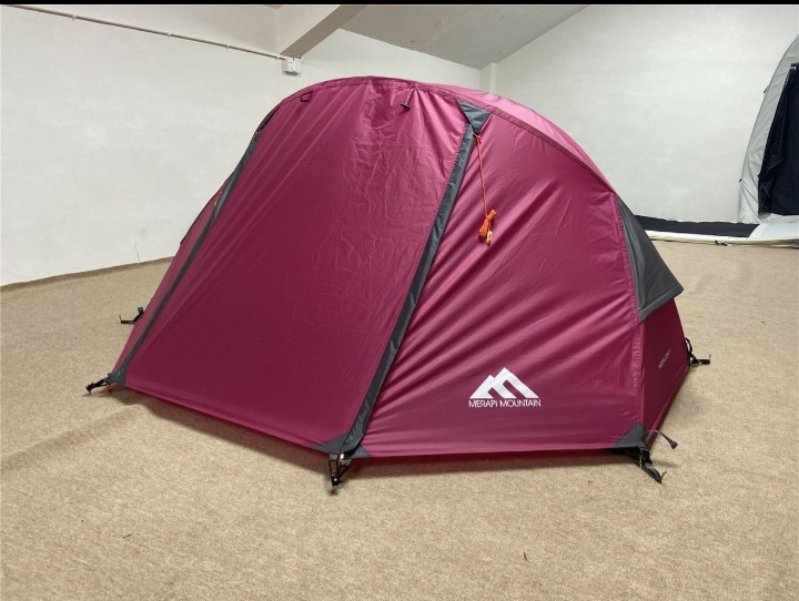 Spesifikasi Material: Bahan Flysheet: 190T polyester PU2000mm seam taped. Bahan Inner tent: 190T polyester breathable/mesh. Bahan mesh: B3 no-see-um Bahan lantai tenda: 190T polyester PU3000mm seam taped. Bahan Footprint: 190T polyester PU3000MM seam taped. Frame tenda: D8mm aluminium 7001 * 2 pcs Bahan pasak tenda: D6mm, 17.5mm aluminium pegs * 9 pcs. Bahan Guyline (tali pengencang): D3mm reflective menyala dalam gelap Buckle: Duraflex buckle Nett Weight: 1.8kg (without Footprint) Footprint Weight: 0.15 kg Packing size 35 x 16 x 16 cm CARA MENDIRIKAN TENDA MOONLIGHT 1 Bentangkan terlebih dahulu lembar footprint, lembar ini berguna untuk melindungi bagian bawah dasar tenda, ini setidaknya bisa memperpanjang usia pemakaian tenda ini. (catatan, bagian yang berlapis waterpfoorf menghadap keatas). Baru kemudian bentangkan bagian dalam tenda diatasnya (Inner tenda). Pemasangan frame tidak menyilang seperti umumnya tenda dome, akan tetapi sejajar. Masukan ujung frame kedalam lobang di keempat ujung tenda, sehingga posisi frame seperti di foto nomor tiga. Kemudian baru silangkan kedua frame dengan cara mendekatkan silang keduanya, perhatikan foto nomor empat. Baru kemudian clip inner tenda dipasangkan satu persatu pada frame seperti terlihat pada foto nomor lima, pada pesilangan frame ada clip khusus yang kami namakan dengan “Point Join Lock System”, biarkan clip itu dulu jangan dipasangkan. Setelah terpasang semua clip akan terlihat seperti foto nomor enam. Baru setelah semua clip terpasang, kemudian pasangkan clip khusus yang dirancang untuk memperkokoh posisi silang frame. Clip ini ada di dua tempat persilangan frame. Langkah selanjutnya pasangkan flysheet nya. Sebelum flysheet dipasangkan kencang pada tenda, terlebih dahulu pasang velcrow strap yang ada di bagian dalam flysheet. Strap ini berfungsi untuk lebih memperkencang terpasangnya flysheet pada tenda dan pas menurut alur desing framenya. Strap velcrow tersebut ada di bagian atas depan dan bagian atas belakang tenda, lihat gambar nomor sepuluh. Setelah terpasang baru pasangkan buckle dibagian bawah tenda tepatnya di setiap ujung tenda untuk mengencangkan menempelnya flysheet pada tenda. Kemudian setelah semua terpasang lalu tancapkan pasak di ujung-ujung tenda, saat memasang pasak satukan ujung webing foorprint dan flysheet kemudian baru pasangkan pasaknya. Kemudian anda hanya tinggal memasang dua pasak dari kedua ujung vestibule tenda dan kencangkan ujung-ujung tersebut. Dan tenda Moonlight anda sudah berdiri sempurna. Ditambahkan pada: 15 February 2020 Produk TerProduk Lainnya